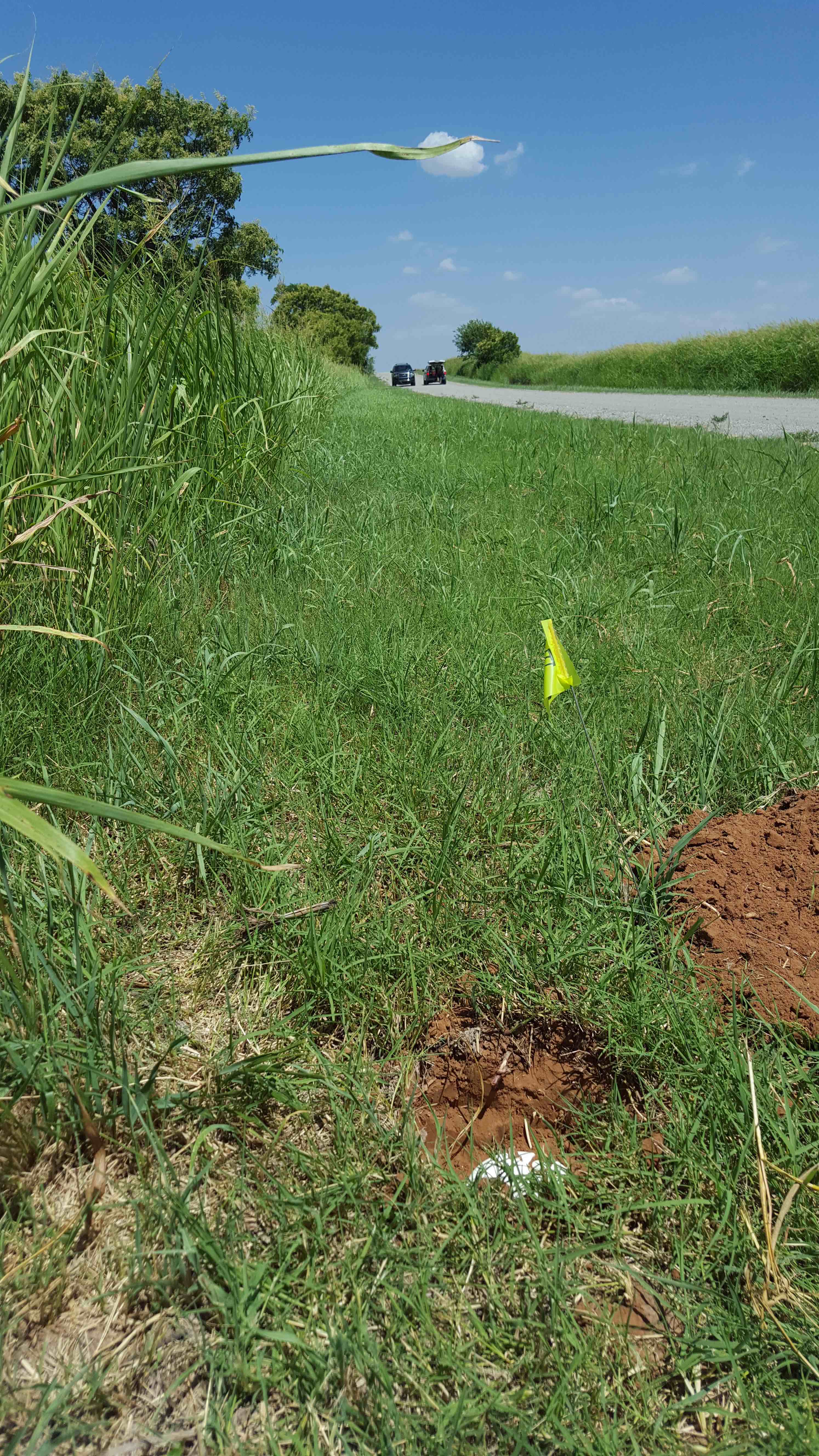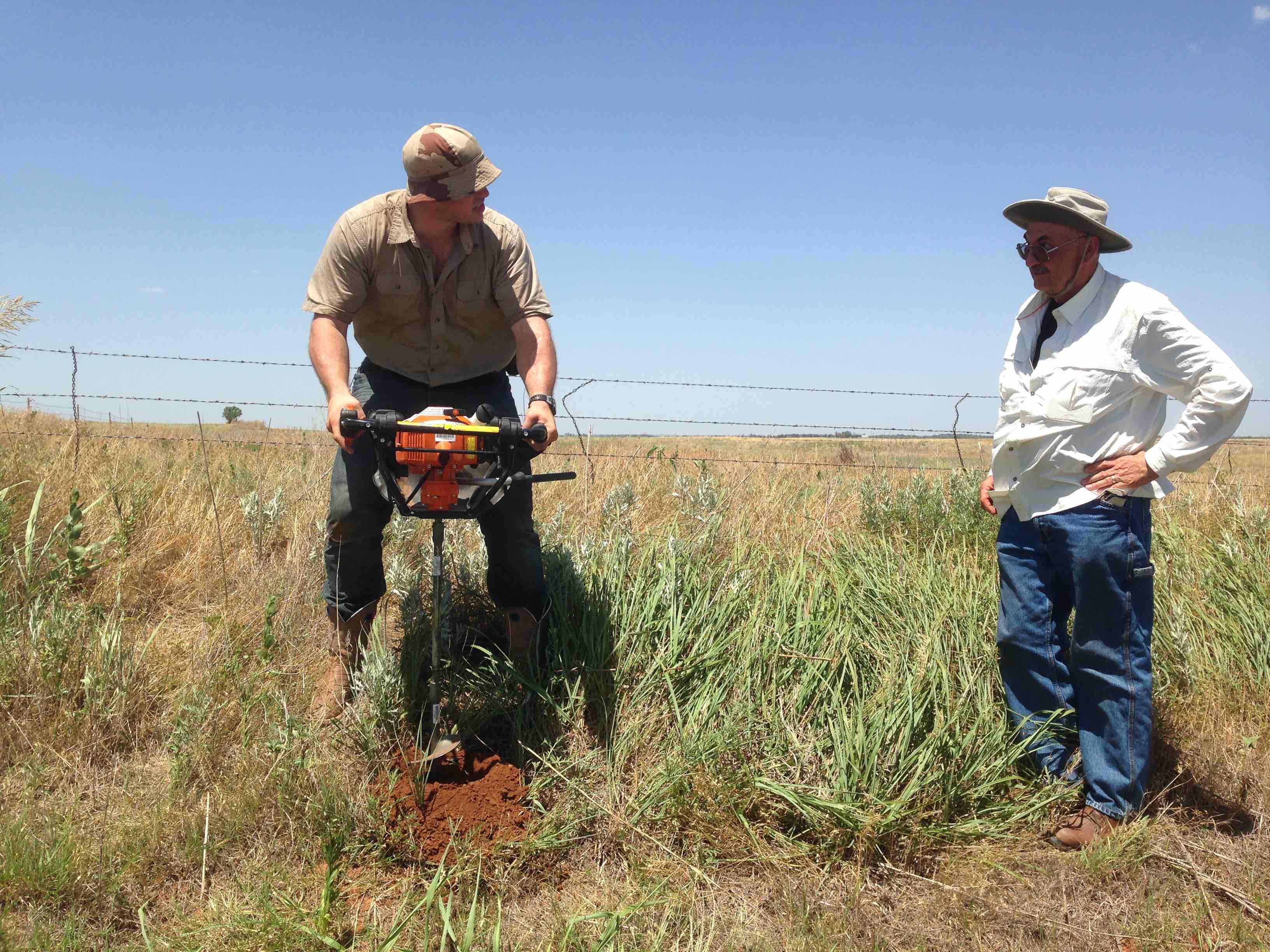 A hand auger was used to drill node holes along portions of the seismic lines where the ground was particularly hard