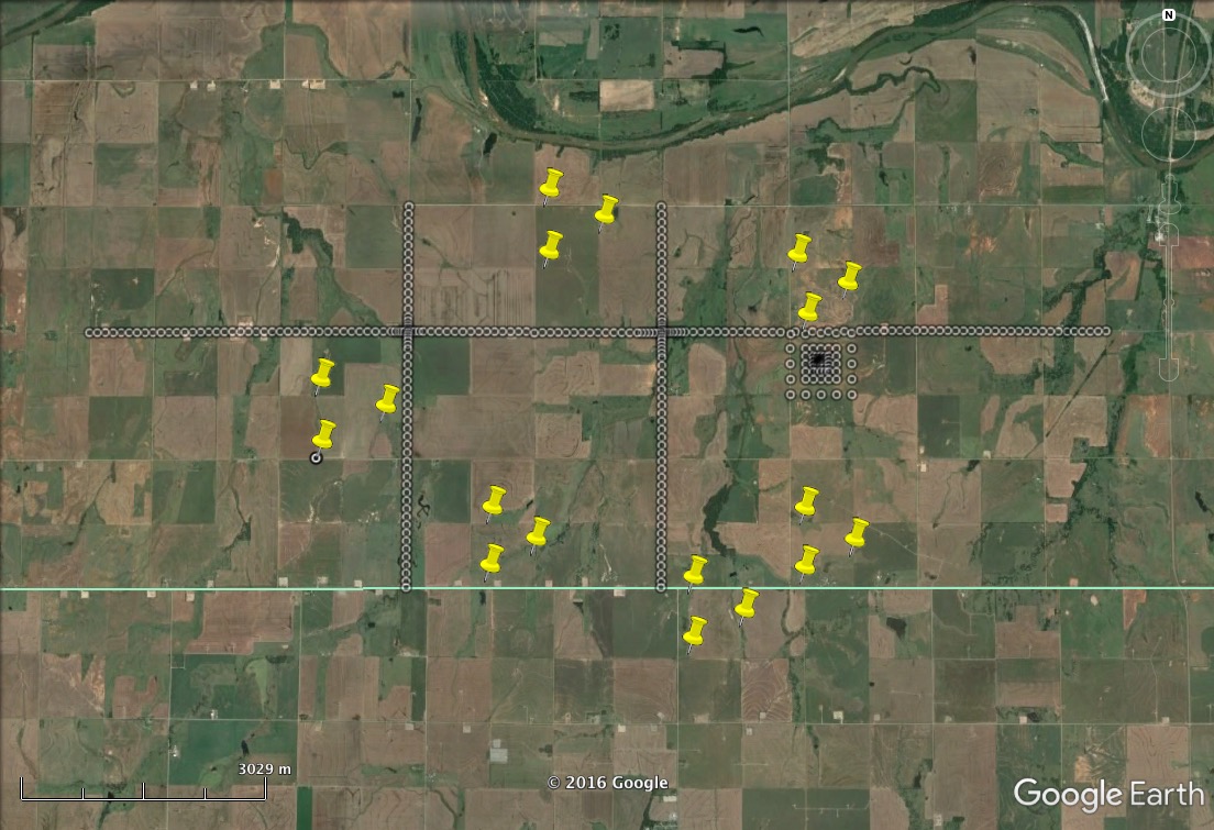 The Golay broadband array, composed of 6 smaller 3-station miniarrays, was designed to test the feasibility of recording seismic energy from a large array with a minimum number of stations. These 18 stations were installed by IRIS/PASSCAL staff (with volunteer support) in June 2016 alongside the gradiometer and seismic lines. Unlike the node deployment (which lasted 30 days), the Golay stations were deployed from June to November (5 months) and were fortunate to record the Oct-9 Pawnee, OK M5.8 quake.
