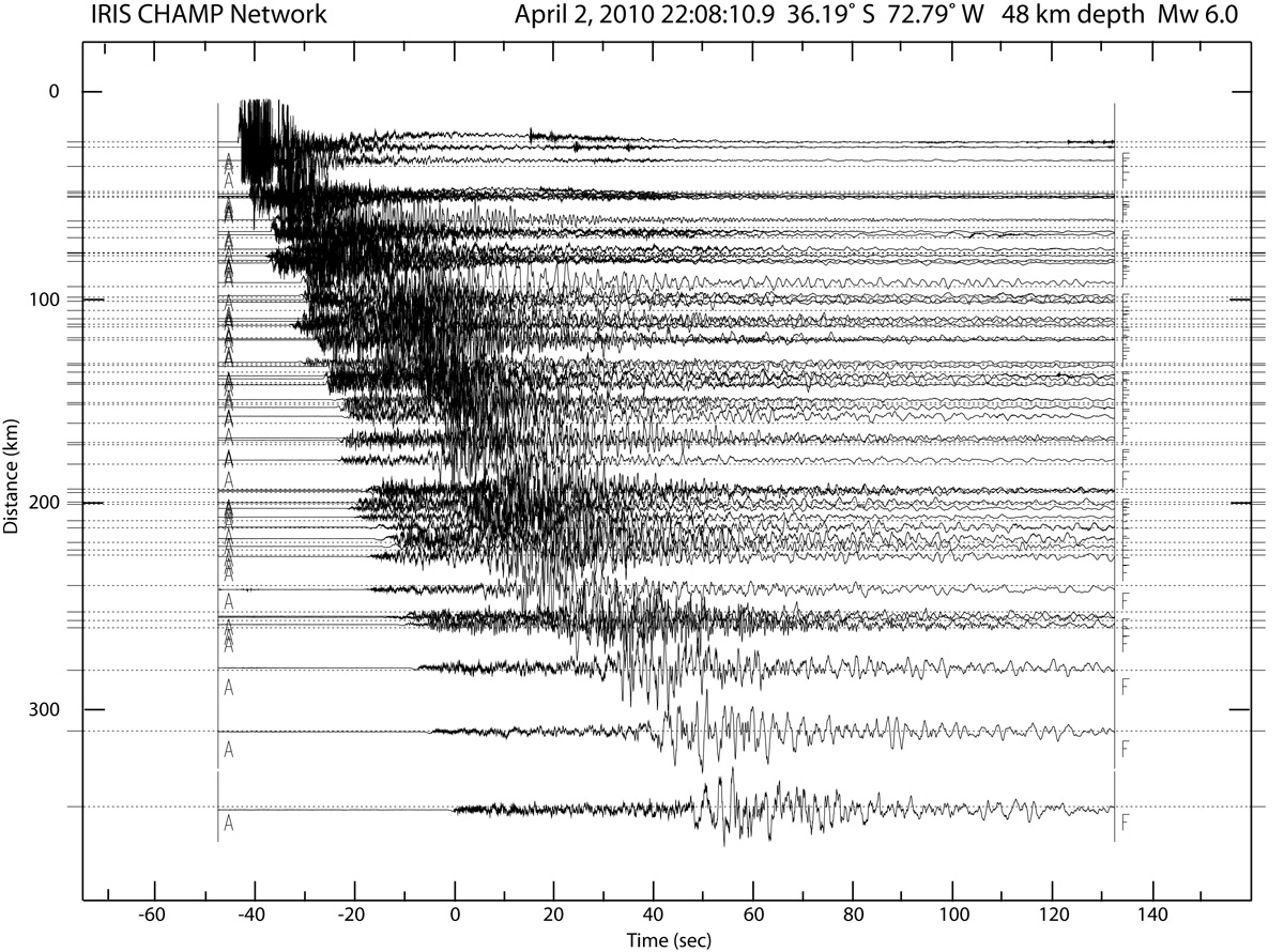 The IRIS CHAMP network recorded the magnitude 7.2 Baja event. Click on the image to view a larger version. |