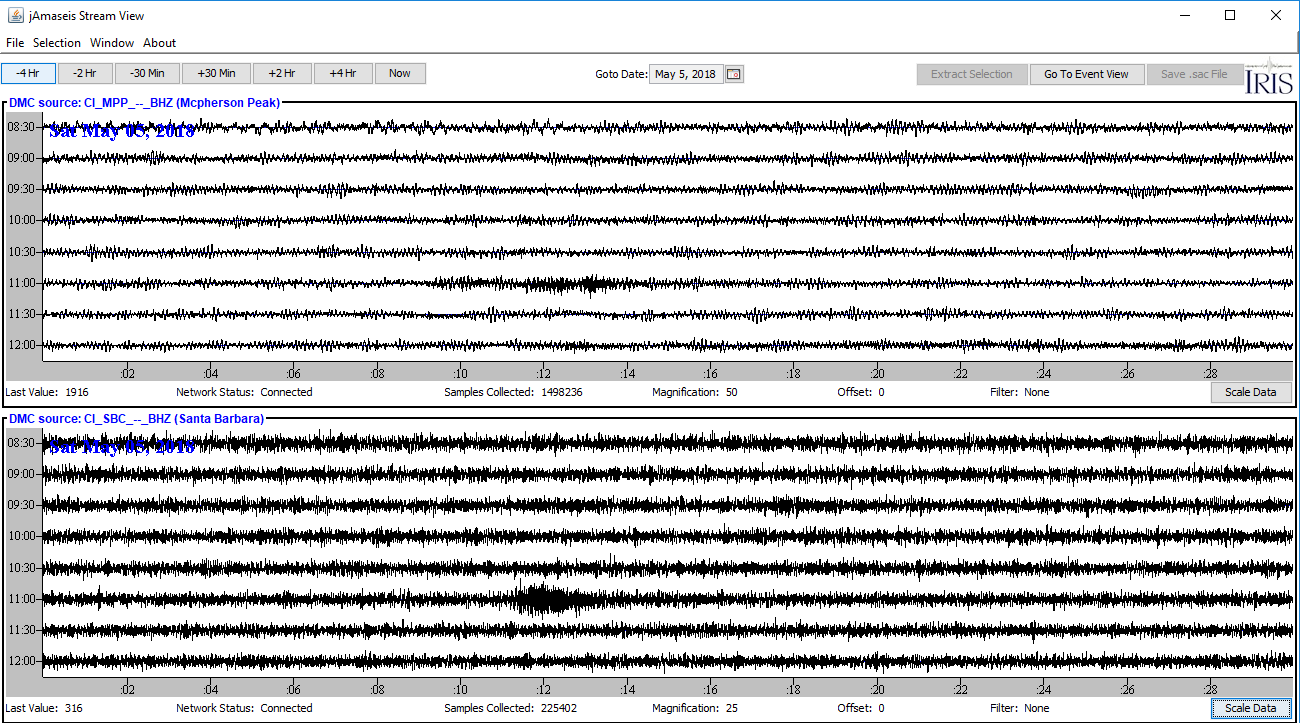 Seismogram of the Mars InSight launch displayed by jAmaSeis.